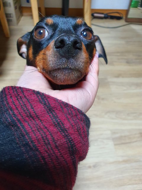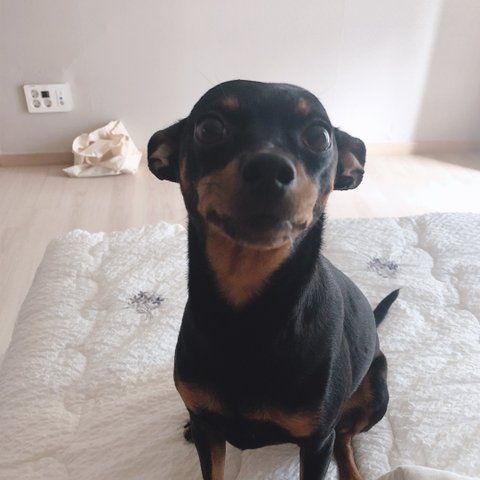 유기견이고 데려왔을때 4살 추정 미니핀 여아임
