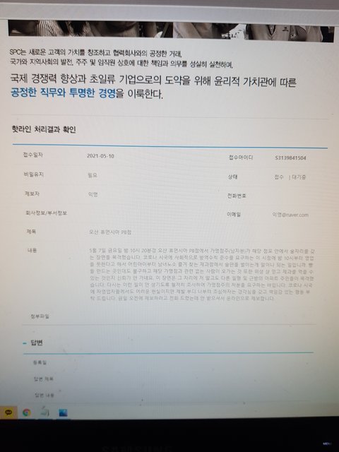 파리바게트 본사에 핫라인 제보 접수하였으나,