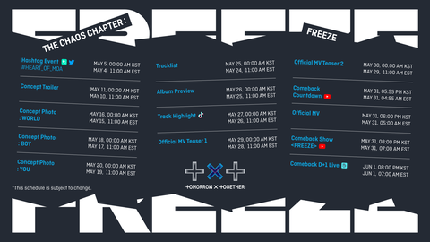 5월 31일 투모로우바이투게더가 정규 2집 혼돈의 장:FREEZE로 컴백해! 많관부~