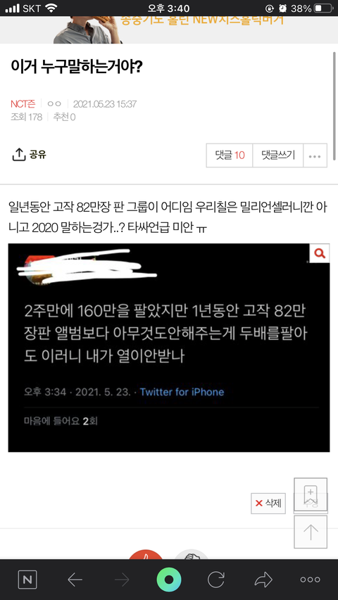 댓글 많이 달린거 보고 놀라서 지웠어 덕질 시작한지 얼마 안됐고 잘 몰라서 밀리언셀러 기사 났으니깐 당연히 127은 아니라고 생각한거야 아직도 뭔 차트 .. 그런거 하나도 모르겠고 ㅠㅠ 가온이랑 헌터랑 다르다고 하는데 그건 또 뭔소린지 하나도 모르겠다