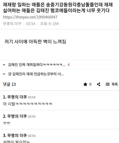 남혐 없고 남자랑 엄청 잘 지내고 오히려 남자 커리어 많이 띄워줌(문특으로 떡상한 남돌들..)