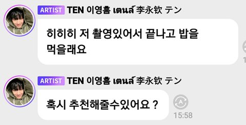 텐 오늘 저녁메뉴 추천받더니