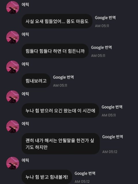 근데 요새 많이 힘든가봐... 힘든 내색 딱히 안하고 그냥 힘주라고 이런식으로 간접적으로 말하던 애인데 이렇게 직접적으로 힘들다고 말하니까 너무 슬프네