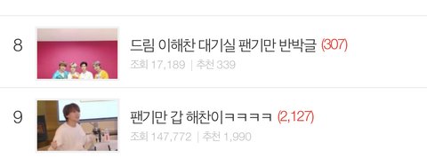 팬도 아니고 걍 슴덕으로서 몇번 챙겨본 정도여서 별 관심은 없었는데 톡선 대기실 반박글 읽고나서 어제 하루종일 까였던 팬기만 글 들어가보니깐.. 진짜 정신병 걸린 사람들 같더라