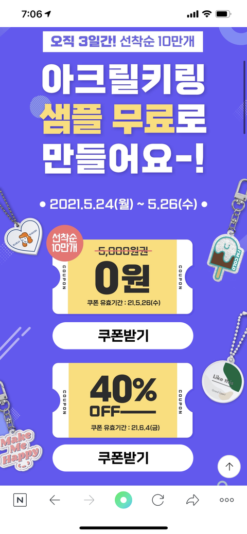저번에 스냅스처럼 오프린트미에서 배송비만 내면 5000원 키링 만들 수 있어!!