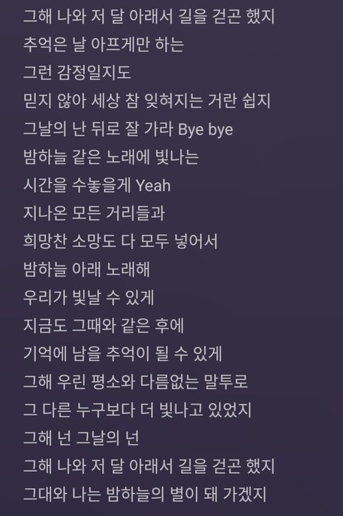 일부러 사진 안하고 가사로 하니까 다들 예쁜 가사 많이 올려줘❤️ 기왕이면 곡 제목 함께 가수도 누군지 알려조