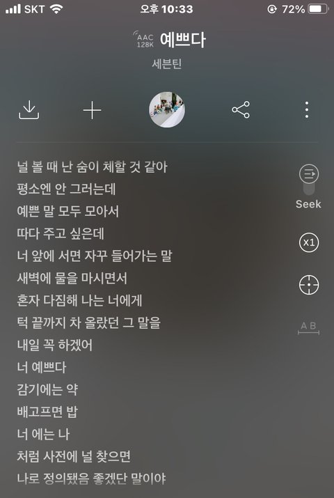 +헉 얘들아 예쁜 가사 다 고마워 ㅠㅠ 내가 내일 꼭 다 듣고 답글에 인증할게 고마워 ++얘들아 내가 진짜 급한 사정이 생겨서 노래 인증 못해줄것같아 ㅠㅠ 진짜 미안하고 다음에 늦게라도 꼭 해줄게 다시 한 번 미안해 지금 새벽 4시 7분인데 내 개인적인 일때문에 그런거니까 튄다고 생각하는 사람들 없었음 좋겠어ㅠㅠ그래도 댓달아줬는데 약속 못 지켜서 미안해