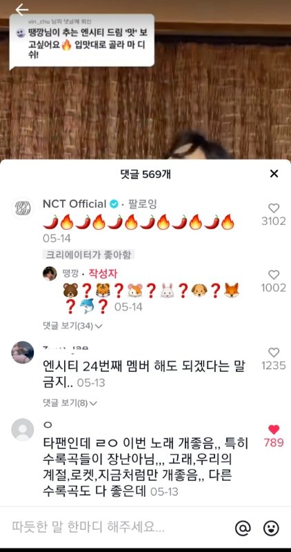 땡깡님 맛 커버한거 댓글에 엔시티 공계가 댓글달았넼ㅋㅋㅋㅋㅋㅋㅋㅋㅋㅋ
