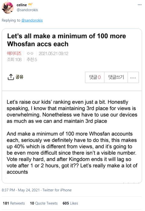 거기에 판 글도 번역되있길래 티니들한테 보여주고 싶어서 몇년만에 로그인했엌ㅋㅋㅋ외티니들 엄청 감동중이야 ㅠㅠㅠㅠㅠㅠ