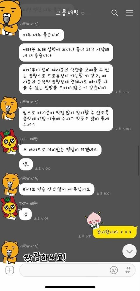 근데 되게 스윗하시네 말투에서 진짜 뿌듯함이 느껴짐 그리고 최범규 카톡 글씨체 뭐냐 개귀엽네