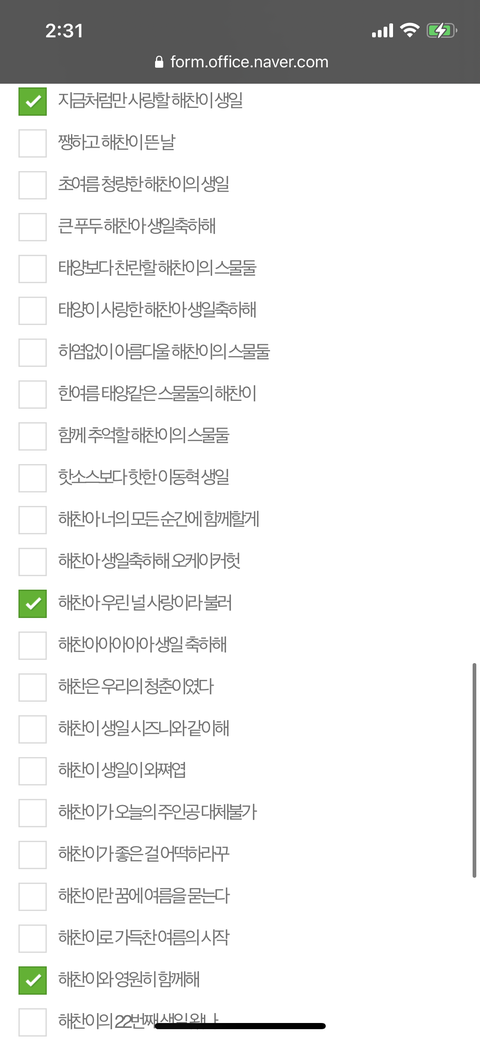 다들 햋찬이 생일 해시투표 뭘로했냐
