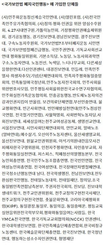 국보법 폐지 찬성한 매국노 단체들이래