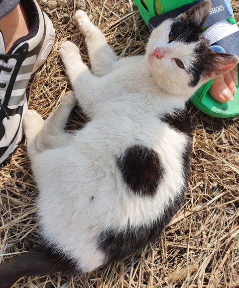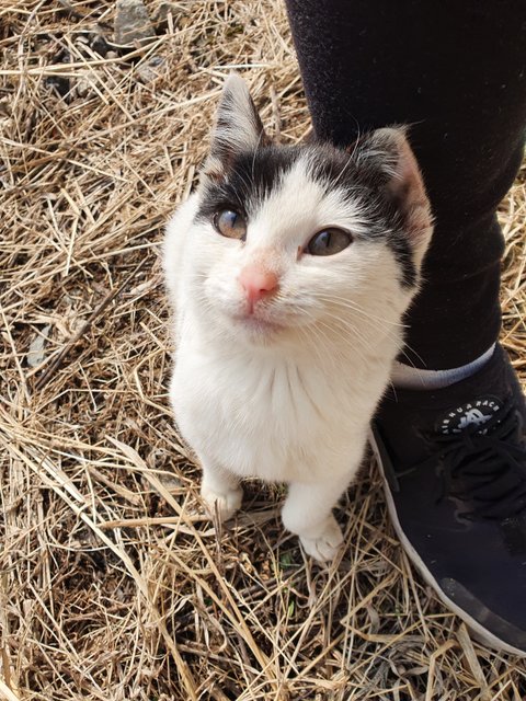 어느날 공터 지나가는데 아직 어린 냥이가 저한테 쪼르르 다가오더니 애교를 부리기 시작했어요.