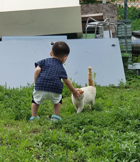 풀숲에서 처음본 냥이랑 노는 모습이 너무 귀여워 찍어봤어요