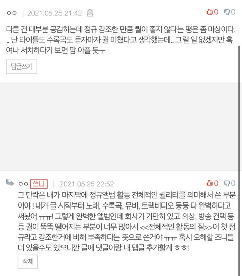소비자인 우리가 팬이라는 이름으로 이정도 성과를 만들어 줬으면 회사는 소비자의 요구를 듣고 아티스트를 지원해줄 의무가 있는데, 다른 소속사 그룹 보는것 마냥 손놓고 보고만 있음.