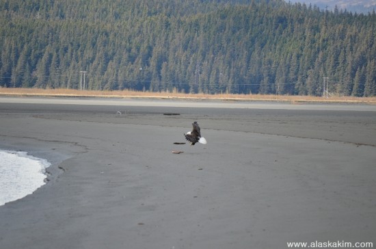 물 빠진 갯벌 저편에 독수리 한 마리가 있어 사진기를 둘러메고 하염없이