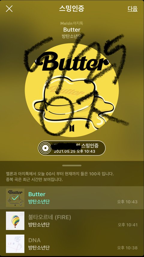 제일 위에 버터 한곡은 방금 음성인식해서 한거구!
