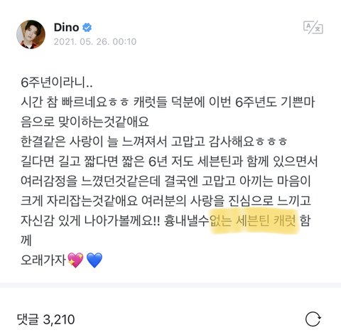민규 내사랑들 이라고했다