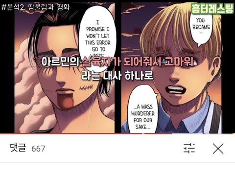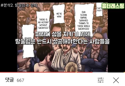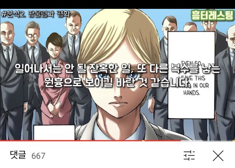 난 이게 맞다고 생각해 그리고 파라디는 결국 망한 게 맞는 거였어....ㅠㅠ 허무하지만 이로써 ㅈ지메가 무슨 말을 하고 싶었는지 알 것도 같음 우익 꼬리표를 완벽히 떼진 못하겠지만 조금이라도 잘린 느낌