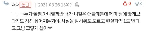 그전까진 무조건적으로 페미혐오하는 남자애들은 개찐따거나 남초커뮤에나 있는 애들인줄 알았는데,