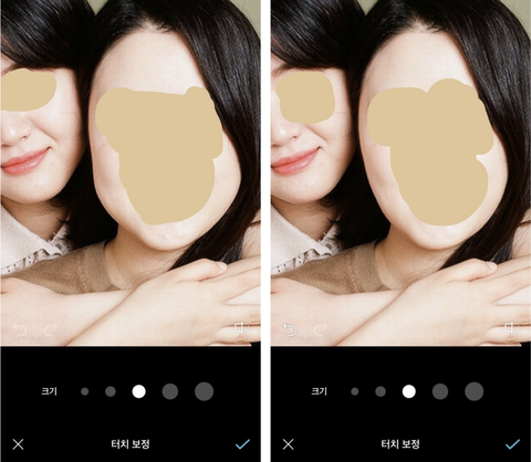 그리고 또 이게 포즈가 ^^ㅎ 사랑스럽게해보겠다고 얼굴을 둘이 붙이고 찍은것도 있어 이런건 좀 애매할수도 있는데 터치보정으로 턱 살짝 조지고 + 피부 보정을 부시니까 괜찮더라