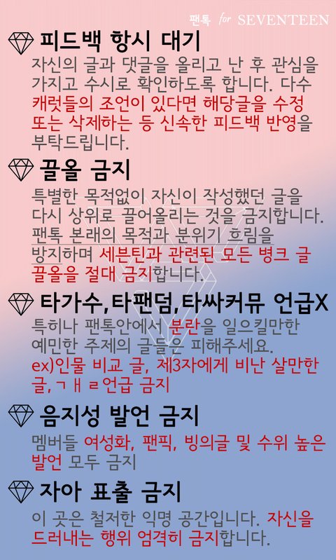 팬톡 공지 보고 오고 뭔가 네가 생각해도 찝찝하면 글 쓰지 말자:)