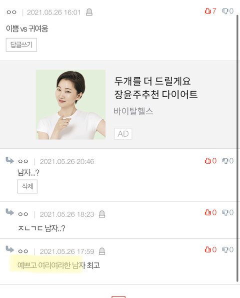 사진만 봐도 보이는 것 처럼 여기 헤녀들 눈팅 많이 한단마링야 만약 글을 쓰게 된다면 상황이나 자잘한것들을 조금 바꾸고 글을 쓰는 게 좋을 것 같아...나도 내 짝녀 판 하는 걸 어찌하다가 보게 되서 요새 글 쓸 때 조금씩 바꿔서 써ㅠㅠㅠㅠㅠ +++ 사진은 요즘에 올라온 이상형 추반글이야!!