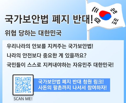 국가보안법 폐지 반대! 국회입법으로 빠르게 이동하는 큐알코드로 국가보안법과 대한민국을 지켜내자!
