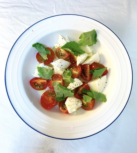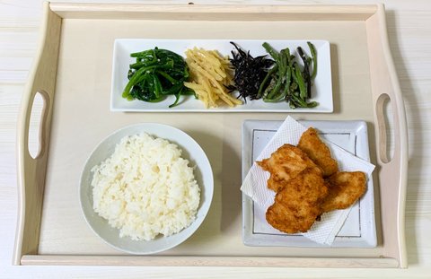 혈압이 떨어지지 않아 음식 조절을 하며 나물에 간을 약하게 한 양념없는 비빔밥나물 & 닭퍽퍽살 튀김이름 모를 생선구이카프레제