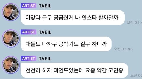 그리고 어제 SM 카카오 합병 기사 뜨기 전날 nct 127 태일이 팬들한테 보낸 버블