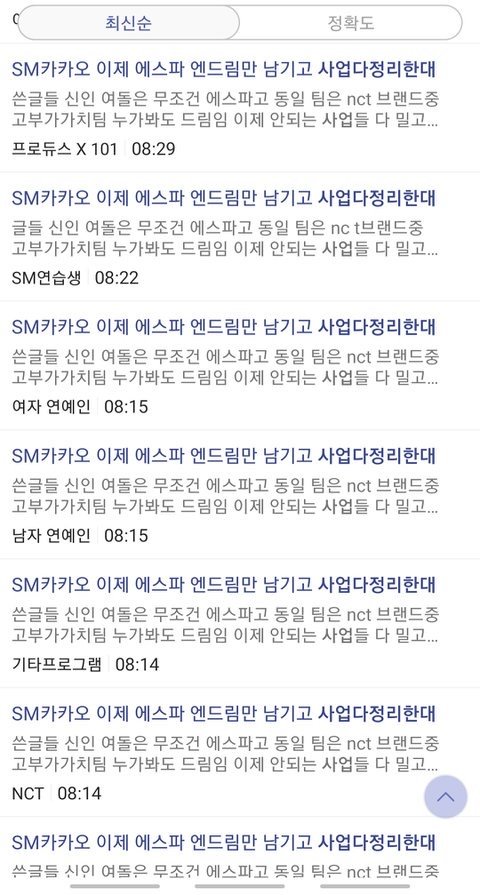 사원코드 인증해야 글쓸수있는 블라인드에서 sm 직원들이 어제 카카오sm인수합병 터지고 난 후 쓴글들
