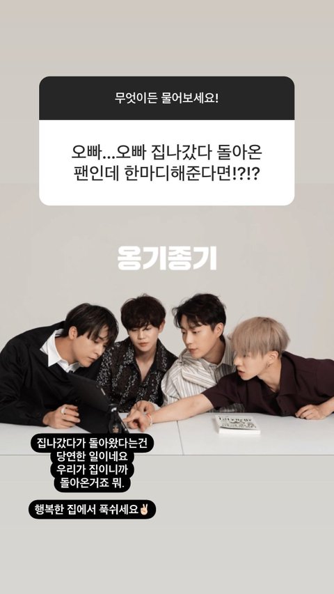 집 나갔다 다시 돌아온 팬에게 한마디 해준다면?