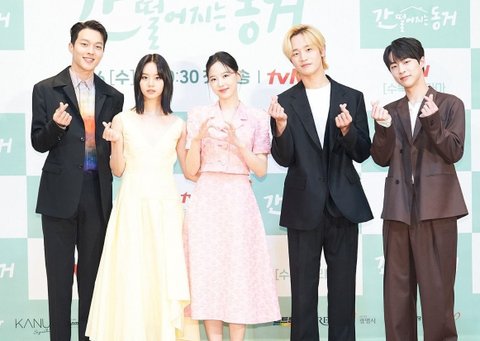 26일 tvN 수목드라마 <간 떨어지는 동거> 제작발표회가 온라인으로 진행됐다. 배우 장기용, 이혜리, 강한나, 김도완, 배인혁, 남성우 감독이 참석해 자리를 빛냈다.