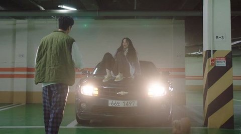 남자 차 위에 올라가서 난리치는 여자