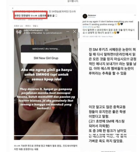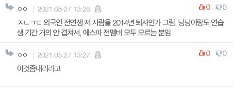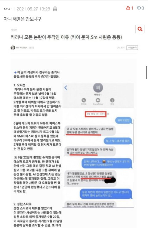 자신이 헤린이 동창인데, 그 루머 다 찐이라고 헤린이가 ‘직접’ 말했다고 댓글을 썼어. 학교 인증까지 다 있어서 사람들 다 에스파가 왕따 주동자라고 믿는 증거로 썼고.