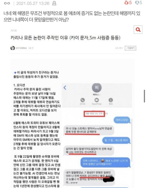 너희 억울하고 루머 정정하고 싶은거 잘 알겠는데 우리 애 글 왜곡해서 니들 입맛에 맞게 써먹지좀 말아주라..