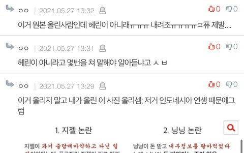 이건 어제 이 사진 올린 애들 댓글 몇개 캡쳐한거 .