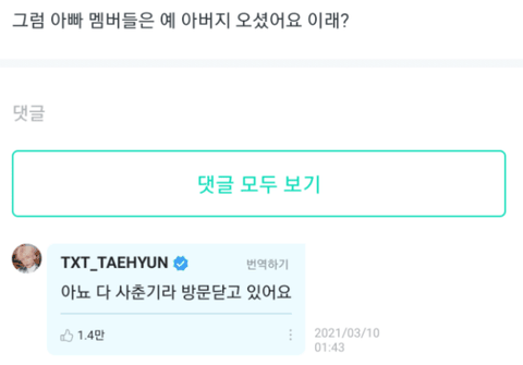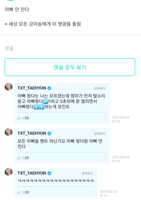아빠왔다~ 하면서 숙소로 퇴근하는 투바투 태현