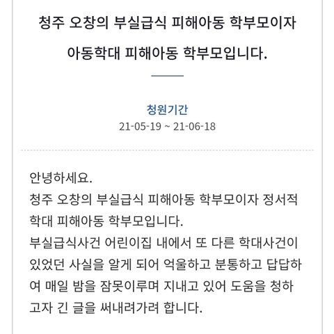 내용이 너무 길어 자세한 이야기는 청원내용에 담았습니다ㅠㅠ