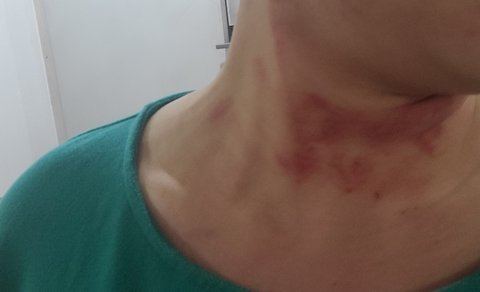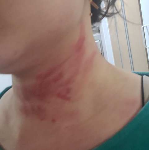 제 목 상처를 보며 제 목 위에서 남편이 목조른 시늉을 하며 아빠가 이렇게이렇게 했어요?