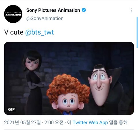 가운데 캐릭터가 뷔 기자간담회따 머리랑 비슷하다고 팬사이에서 화제된거 알고 제작사가언급