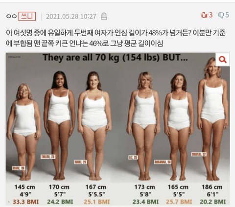 무슨말인지 짤로 설명 여기서 세 사람 팔길이와 키는 다 같음 다리길이랑 몸통만 다름