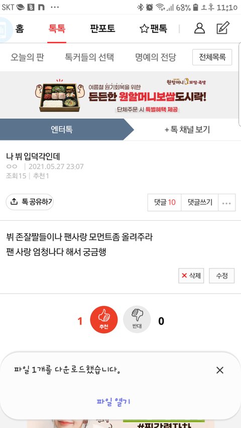 이 글 쓴 쓰닌데 어그로 끌렸다해서 팬톡겨우 찾았다.. 제발 저 사진 말대로 존잘 짤이나 팬사랑 모먼트좀 올려주라..