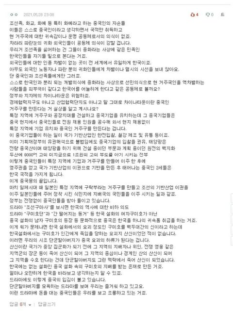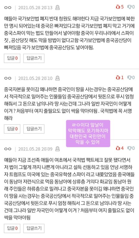 3. 마지막으로 여기 여론몰이 댓글 달 조선족, 댓글알바들아 여기다 댓글 달면 너네도 국적법, 차이나 타운 건설 반대에 참여 하는 걸로 알고 너희 천안문 민주화