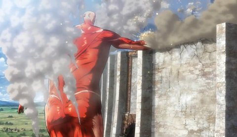 넌 포르코의 말이 들리지 않았음. 초대형 거인이 5년 전과 마찬가지로 벽의 문을 발로 차 부숴버렸기 때문임.