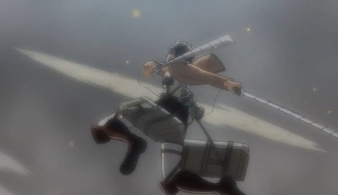 마치 모든 걸 알고 있었다는 듯 빠른 반응 속도로 포르코가 너에게 입체기동을 구사하며 날아왔지만 넌 혼자 힘으로 벽에 무사히 매달림.