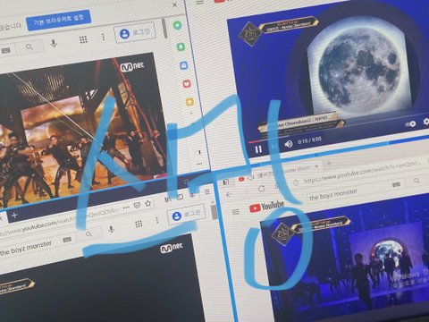 우리 스밍만 해야되는거 아니고 영상스밍이랑 투표도 있어!! 나는 언니한테 처맞고 언니 노트북까지 가져와서 돌리는중이다ㅆㅂ 개아파