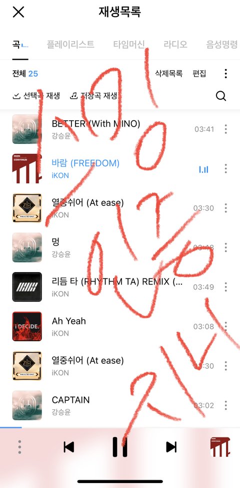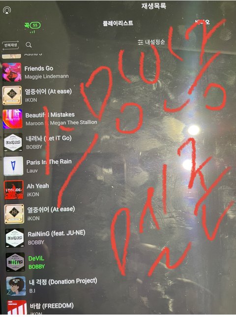 폰하고 탭으로 각각 지니/멜론 돌리고 있어. 기존에 듣던 리스트에 이번 노래만 일단 추가하는 걸로 해서 스밍리스트 따르지는 않았는데, 그래도 바비랑 아이콘 노래 많은 건 느낌 뿐은 아닐 거야.