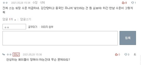 제발 선동 좀 그만하고 역겨운 워딩 좀 그만 쓰라고 환멸 나니까