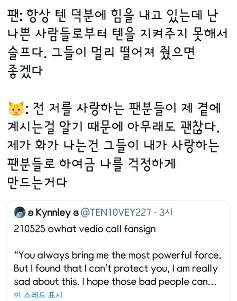 요새 말도안되는 루머가 돌았던거 알고있을거고.. 자기 혼자 괴로운건 괜찮은데 내가 사랑하는 팬들이 내 걱정을 하게만드는게 화가난다는 우리 텐..ㅠㅠ 어떻게 안 사랑해